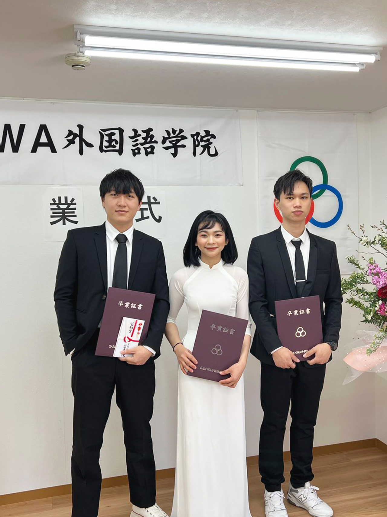 和歌山大学大学院、大阪教育大学、京都産業大学、日本経済大学、東大阪大学短期大学、ECCコンピュータ専門学校、修成建設専門学校、ホンダ テクニカル カレッジ関西、奈良コンピュータ専門学校、大阪観光ビジネス学院、国際ビジネスデザイン専門学校(大学等への進学者:12名、CEFRのA2相当以上のレベルの者:2名、在留資格への変更を許可された者:1名) ![]() |